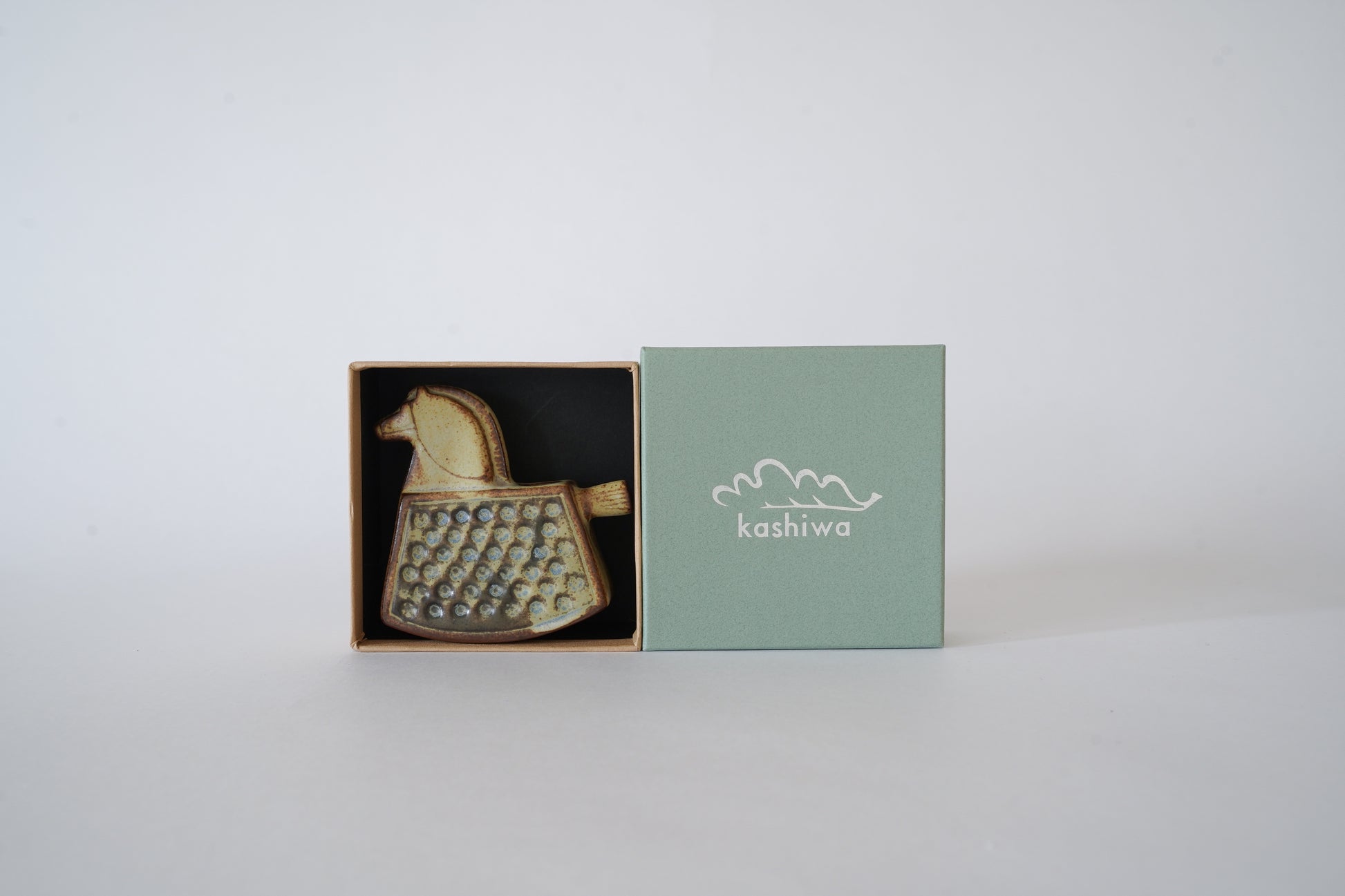 そんな「かしわ窯」による、手の平サイズの馬の花器です。小さな花びらいっぱいのお花でも大ぶりのお花でも、短く切って生ければ、華やかな表情に。
